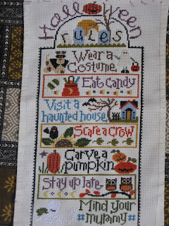 Aquí tenéis el objetivo 8 del SAL: "Mind your mummy". Como os comenté antes, pondré todos los botones, mostacillas y charms al final, así que de momento, el esqueletito está sin ojos. Esta es la foto del detalle (lo siento, salió algo oscura):